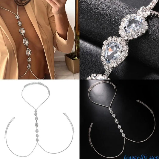 Crystal Belly Waist Chain Teardrop Rhinestones Body Chain Chest Chain Gifts 517D