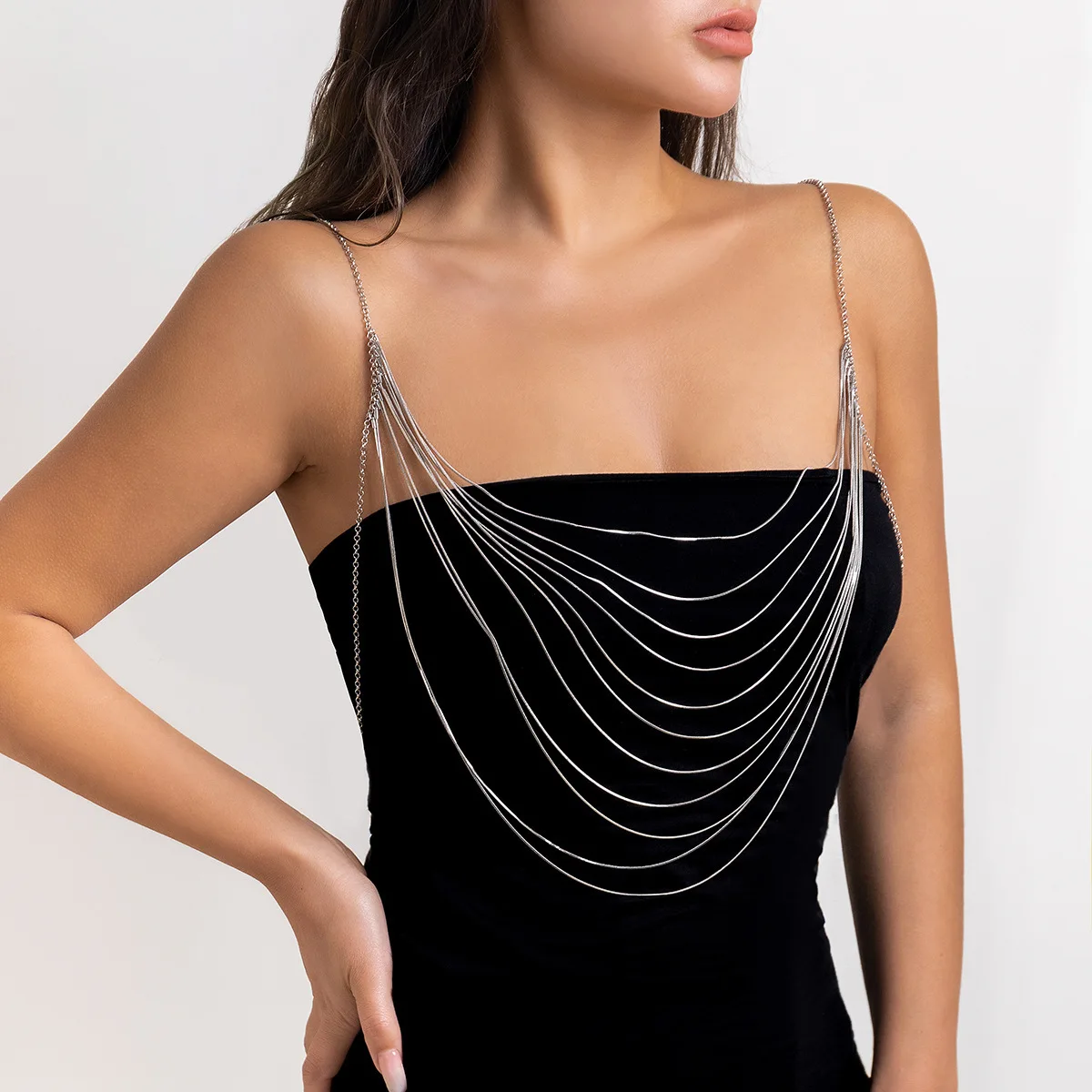 1Pc Multilayers Metal Bead Bra Chain Necklace Body Jewelry for Women Beach Bikini Decor Chest Body Chain Harness Accessories
