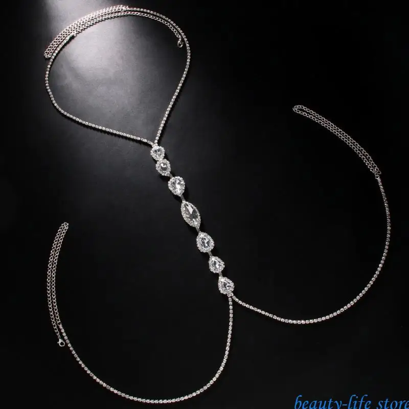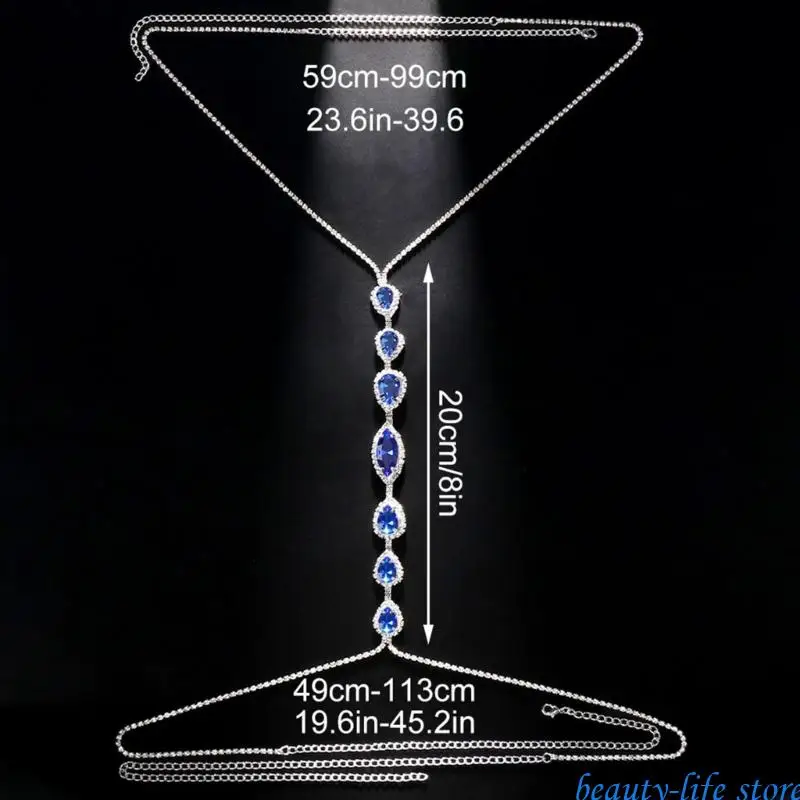 Body chain sizes crystal bra chain has extended chain, adjustable size should be your choice.