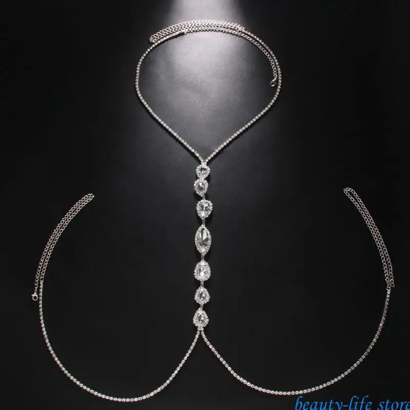 Crystal Belly Waist Chain Teardrop Rhinestones Body Chain Chest Chain Gifts 517D